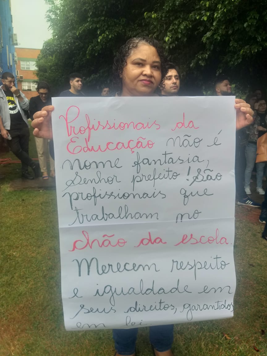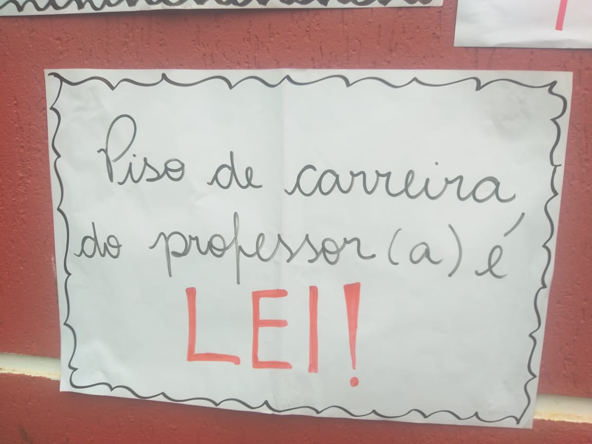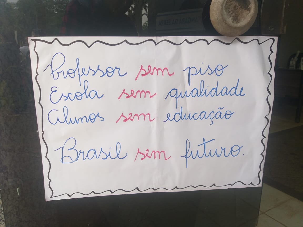 Imagens enviadas pela professora Josete Ribeiro a respeito da mobilização dos profissionais da educação na cidade de Tangára da Serra/MT junto com o sindicato dos professores e professoras, na reivindicação pelo piso salarial nacional, melhorias estruturais e melhores condições de trabalho.