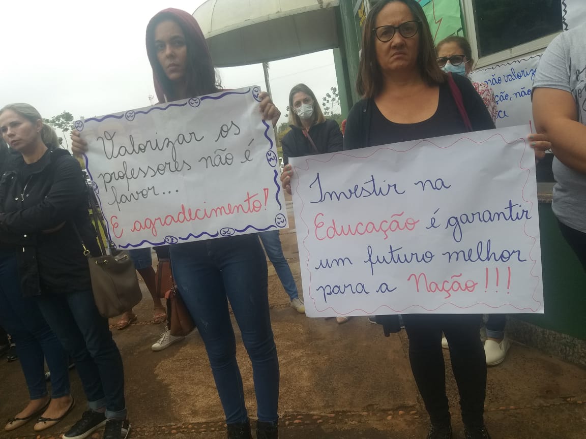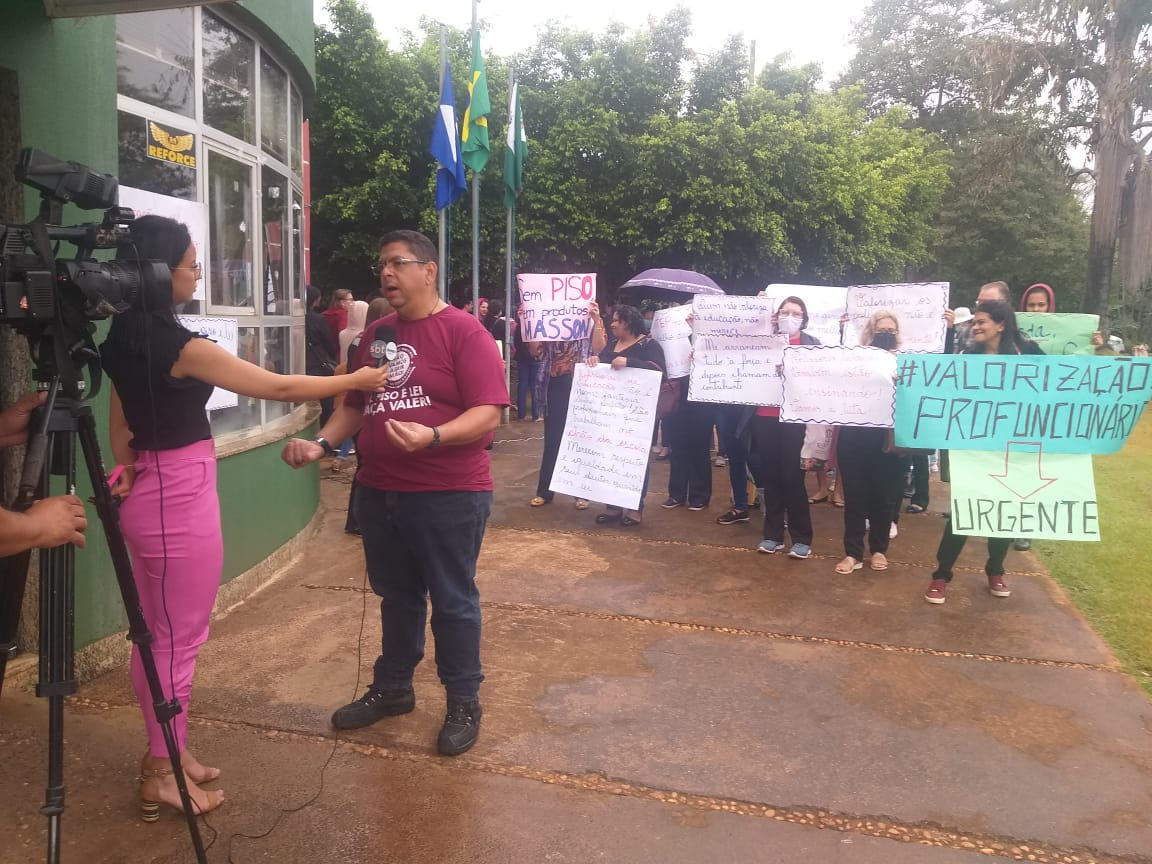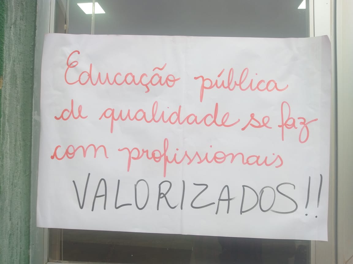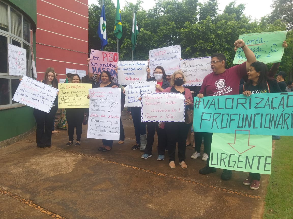 Imagens enviadas pela professora Josete Ribeiro a respeito da mobilização dos profissionais da educação na cidade de Tangára da Serra/MT junto com o sindicato dos professores e professoras, na reivindicação pelo piso salarial nacional, melhorias estruturais e melhores condições de trabalho.