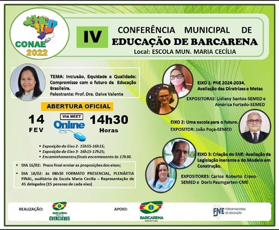 IV Conferência Municipal de Educação do Município de Barcarena - Pa, realizada em Fevereiro de 2022.