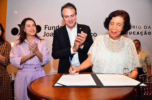 O ministro da Educação, Camilo Santana e a governadora Raquel Lyra participaram da posse de Marcia Angela Aguiar, nova presidente da Fundaj - Foto: Arthur Mota / Folha de Pernambuco.