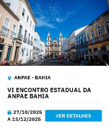 Bahia (ANPAE/BA): o VI Encontro Estadual está programado para 4, 5 e 6 de dezembro de 2025, em Salvador.Promovido pela Direção Estadual da Associação Nacional de Política e Administração da Educação (Anpae), o evento reúne poder público e sociedade civil organizada em torno de um objetivo comum: fortalecer a educação pública, democrática, inclusiva e de qualidade social. Além disso, a iniciativa conta com a parceria especial da Secretaria da Educação do Estado da Bahia (SEC-BA) e da União Nacional dos Dirigentes Municipais de Educação (Undime-BA), o que amplia sua relevância e alcance. Para esta edição, a comissão organizadora convida diferentes atores sociais e instituições a se engajarem no debate em torno do tema: “Educação, Democracia e Participação: planos decenais como eixos das políticas educacionais no território baiano”. Portanto, o encontro constitui uma oportunidade singular para que setores sociais e segmentos educacionais discutam os desafios e as perspectivas da educação brasileira e baiana – da creche à pós-graduação – e apontem caminhos para a formulação dos próximos planos decenais subnacionais (2026-2036). Dessa forma, trata-se de um esforço coletivo e articulado pela consolidação de um projeto educacional para a Bahia e para o Brasil, no contexto da aprovação do Plano Nacional de Educação (PNE) 2025/2035, da elaboração dos Planos Subnacionais e da instituição do Sistema Nacional de Educação (SNE).