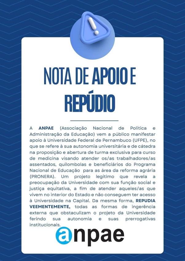 Próximos encontros:Piauí (ANPAE/PI): o VII Encontro Estadual será realizado entre 25 de agosto e 30 de outubro de 2025. O Encontro Estadual da Associação Nacional de Políticas e Administração da Educação (Anpae) é um evento anual que objetiva promover e divulgar ações e resultados de pesquisas e práticas formativas. Tais práticas são fundamentadas na concepção de educação como um direito social e dever do Estado, articulando-a às políticas educacionais nas três esferas de governo. Este ano, no entanto, a Anpae propõe a realização do encontro exposta a um contexto de vulnerabilidade na aplicabilidade do Plano Nacional de Educação (PNE). Essa situação expõe uma realidade na qual as políticas educacionais desenvolvidas no Brasil, embora necessárias, não têm se mostrado eficientes para garantir uma educação com qualidade social a toda a população do país, o que se constitui uma negação do direito à educação assegurado na Constituição Federal e nas legislações complementares. Site do evento: https://anpae.org.br/ENCONTROSESTADUAIS/PIAUI/2025/Piaui/index.html